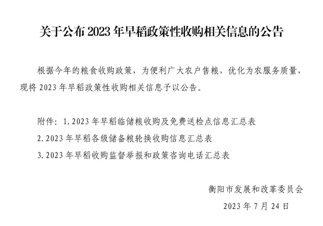 關(guān)于公布2023年早稻政策性收購相關(guān)信息的公告